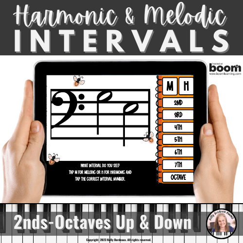 “This is a great way to review identifying melodic and harmonic intervals. Students would definitely prefer to use a game from a tablet rather than just have me ask them to name intervals from their music or a worksheet. I also like the idea of having them play the interval on the piano to add some note review along with the intervals. The fact that they can also use this resource at home makes it a definite winner.”